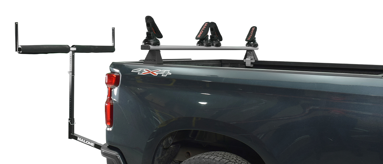 Transport two fishing kayaks without taking up bed space! The Malone Axis™DLX / CrossBed™ Two Kayak Angler Bundle w/Saddles allows you to transport two fishing kayaks while maximizing cargo space in your truck bed. It includes everything you need to safely transport two kayaks each weighing up to 90 lbs. All components are quality checked and covered by Malone's limited lifetime warranty.