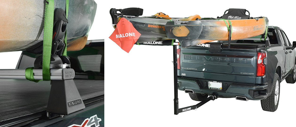 Transport two fishing kayaks without taking up bed space! Compatible with most roll-up tonneau covers. The Malone Axis™DLX / CrossBed™ Bundle w/ Saddles and Tonneau Adapters allows you to transport two fishing kayaks while retaining use of your roll-up Tonneau Cover. It includes everything you need to safely transport two kayaks each weighing up to 90 lbs. All components are quality checked and covered by Malone's limited lifetime warranty.