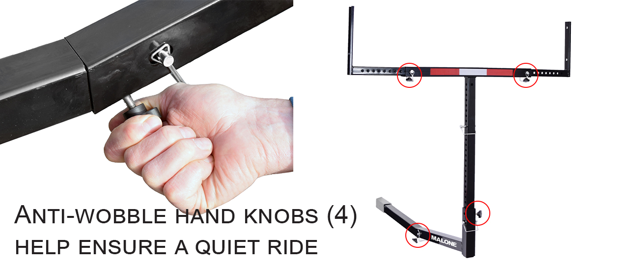 • Anti-wobble bracket and knobs to reduce movement and noise