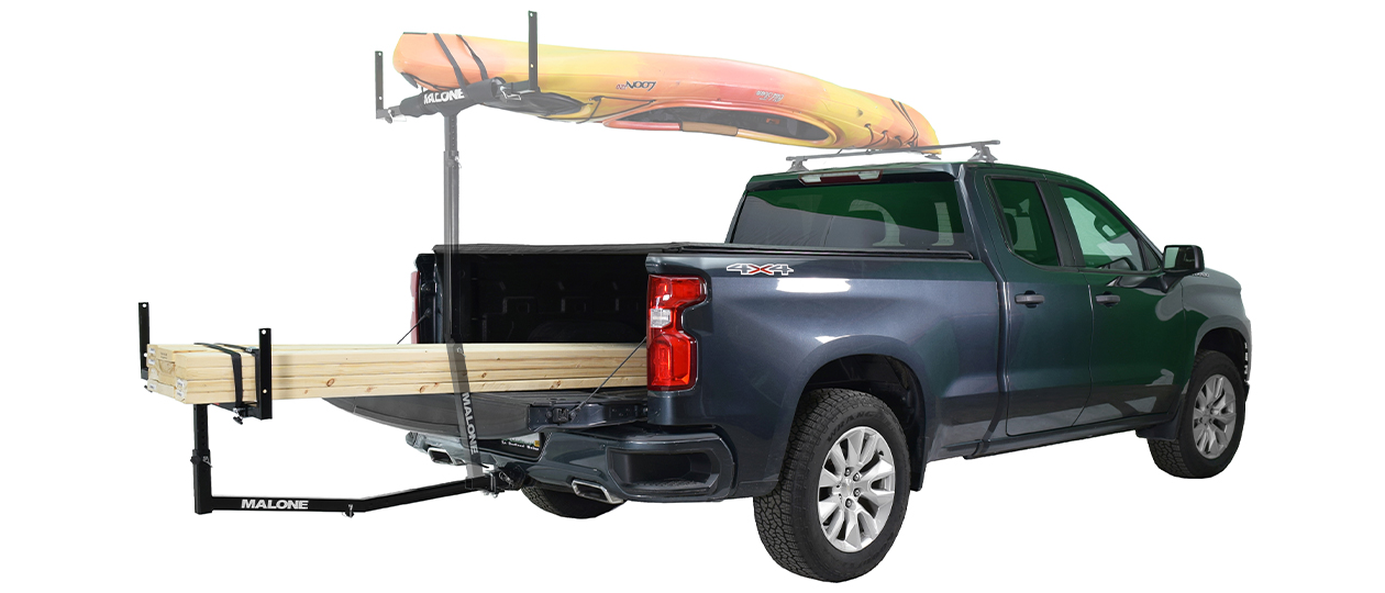The Axis™ DLX Truck Bed Extender is built from heavy-duty steel with a durable powder-coated finish to resist corrosion. It offers versatile positioning — use it vertically as a rear load bar or horizontally to extend your truck bed. The included 24” extension tube allows the Axis™ to be compatible with truck bed cross rail systems including the Malone CrossBed™.