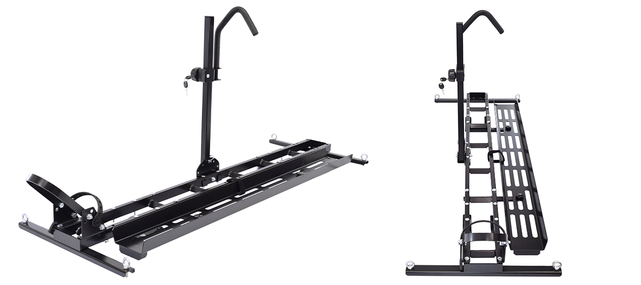 • Low crossbar height to comfortably load heavy bicycles with included ramp