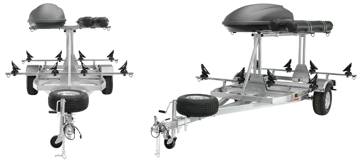MegaSport™ LowBed™ Kayak Trailer w/Tier, Spare, 2 sets SaddleUp™, Cargo Box, 2 Rod Tubes
