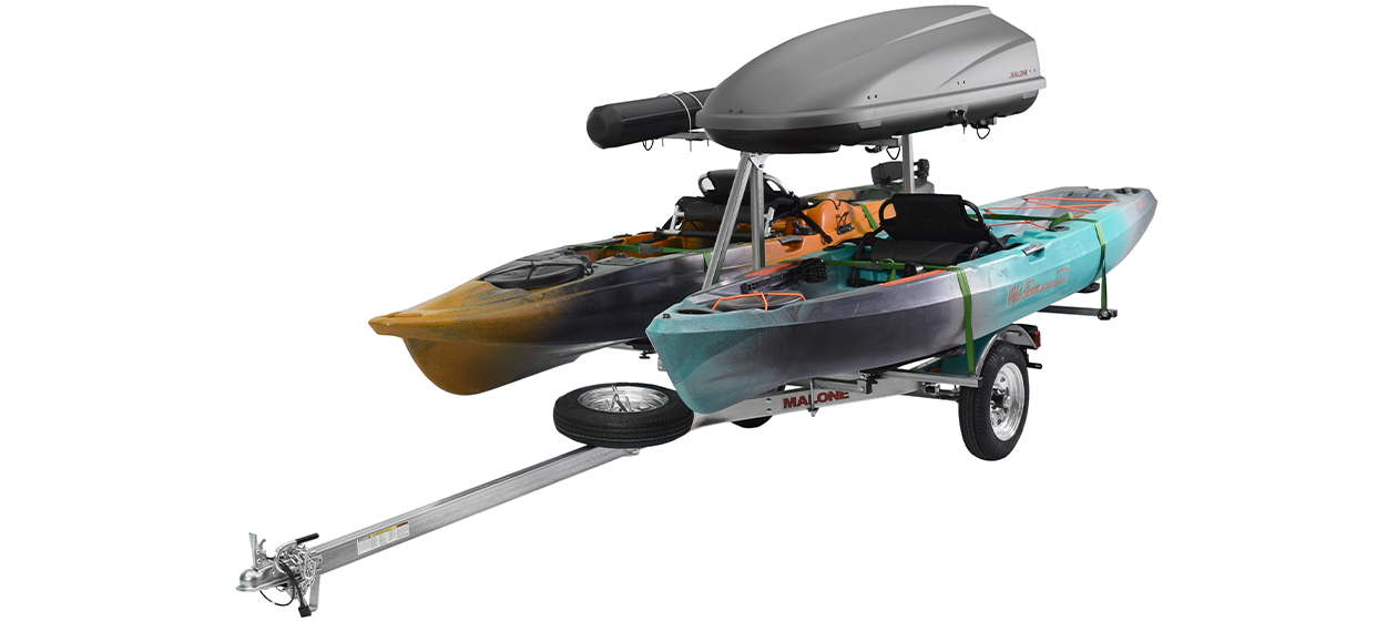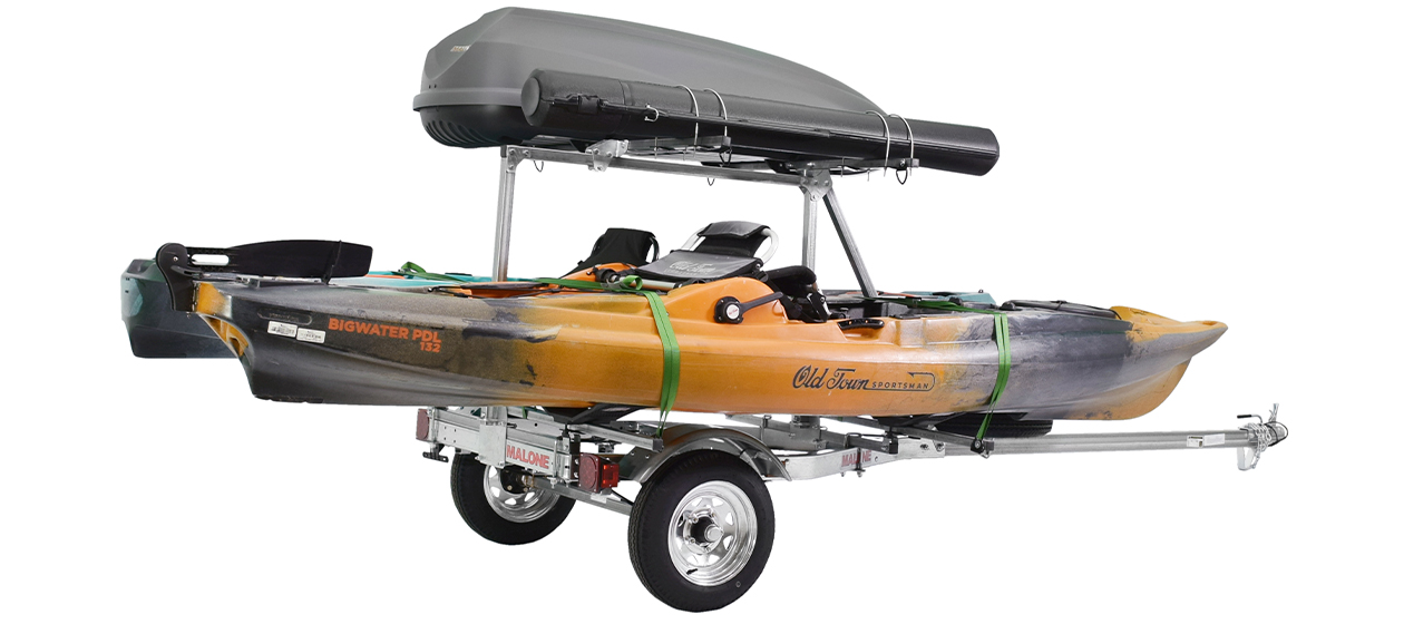 The MicroSport™ LowBed™, equipped with the MPG464-LBTM package is one of our most "option rich" trailers. Each unit is fitted with a 2nd Tier Kit, which is designed to hold the Malone Cargo16™ Roof Box and MPG541 Fishing Rod Storage Tube that are included with this kit.